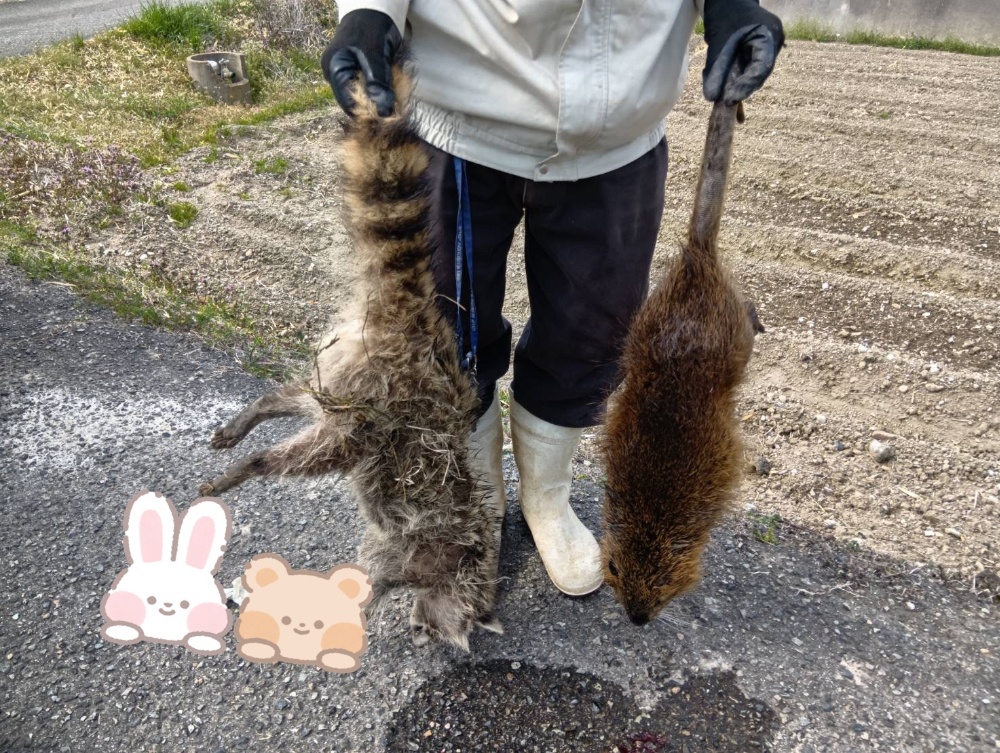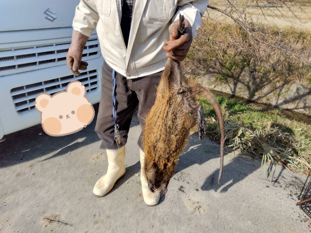 農作物を食い荒らすヌートリア、アライグマも駆除しております。